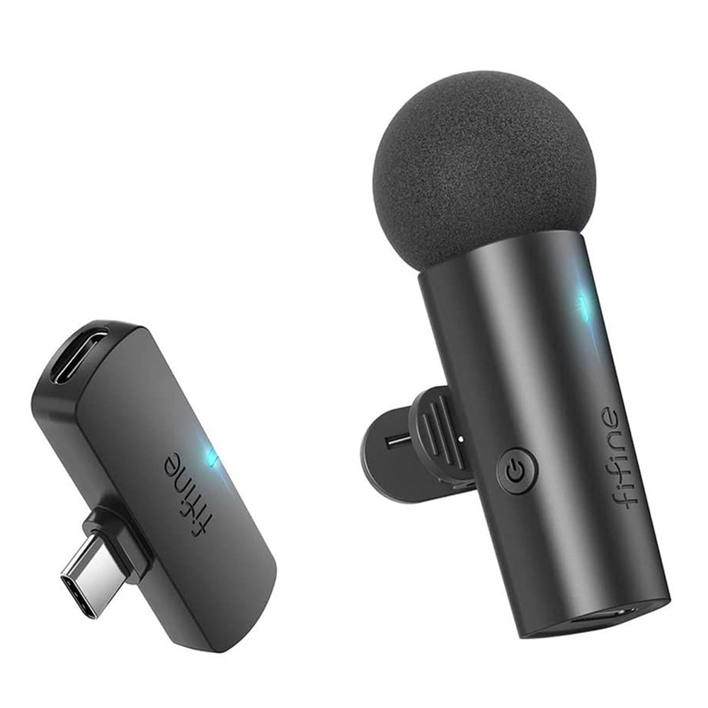 FIFINE M6 — бездротовий нагрудний (лавальє) мікрофон із передавачем 2,4 GHz і USB-C приймачем, розроблений для відеозйомок, стрімів, відеоблогів і онлайн-конференцій. Приймальний модуль під’єднується безпосередньо до смартфона або планшета через USB-C, після чого передавач автоматично спаровується — й ви готові до запису. Мікрофон має вбудований кліп-зажим із 360 ° поворотом, що дозволяє прикріпити його на одяг, та кнопку mute/включення на передавачі для швидкого переходу до паузи запису.