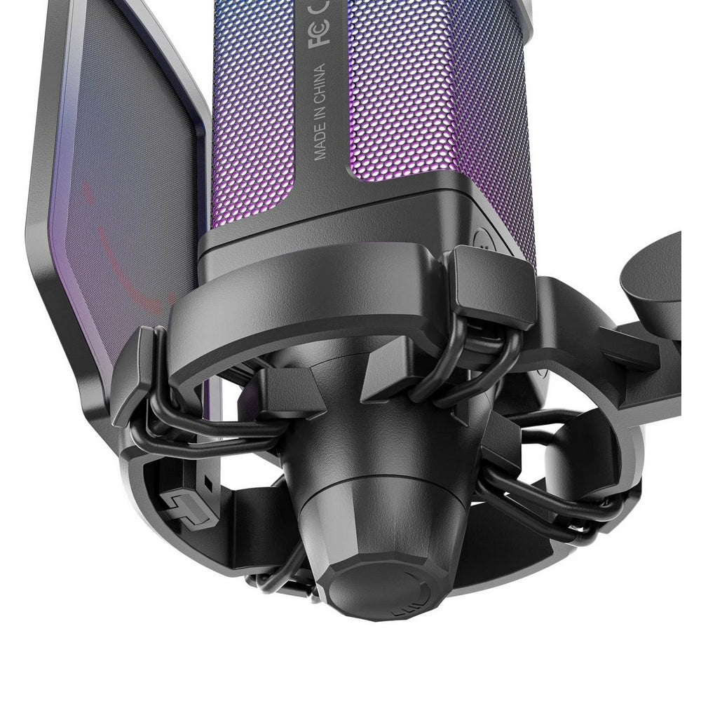 Мікрофон виглядає акуратно завдяки RGB-підсвітці, а комплект включає все необхідне для старту: поп-фільтр та настільний тримач. Металевий корпус забезпечує довговічність, а компактна форма дозволяє використовувати мікрофон навіть у невеликому робочому просторі. Чудове доповнення до сетапу для тих, хто хоче отримати чистіший голосовий сигнал і зменшити небажані шумові ефекти.