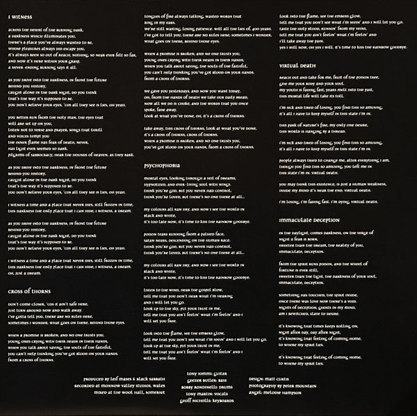 Black Sabbath - Cross Purposes [LP] - Ultra Clear – сімнадцятий студійний альбом (1994) британського гурту Black Sabbath, представлений на надзвичайно прозорому (Ultra Clear) кольоровому вінілі. Цей альбом знаменує повернення вокаліста Тоні Мартіна. Музично платівка продовжує традиції епічного, класичного хеві-металу, поєднуючи міцні рифи Тоні Айоммі з похмурими, але мелодійними вокальними лініями. Альбом відомий своєю сфокусованістю та міцною структурою, а треки, як-от «The Hand That Rocks the Cradle» та «Cross of Thorns», отримали високу оцінку.