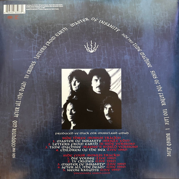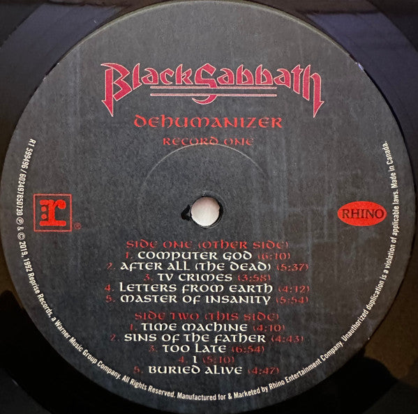 Black Sabbath - Dehumanizer [2LP] – шістнадцятий студійний альбом (1992) британського гурту Black Sabbath, представлений у форматі подвійного вінілу. Цей альбом знаменує повернення легендарного вокаліста Ронні Джеймса Діо (Ronnie James Dio) та барабанщика Вінні Аппісі. Музично платівка є одним із найважчих і найагресивніших релізів гурту, що ідеально вписався в тогочасний тренд класичного хеві-металу. Альбом вирізняється похмурою, апокаліптичною тематикою та потужними рифами Тоні Айоммі. До ключових треків належать «TV Crimes», «I» та «Master of Insanity».