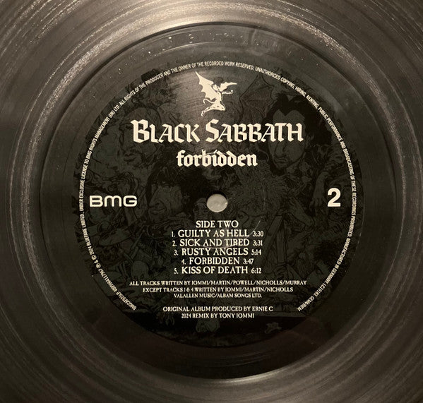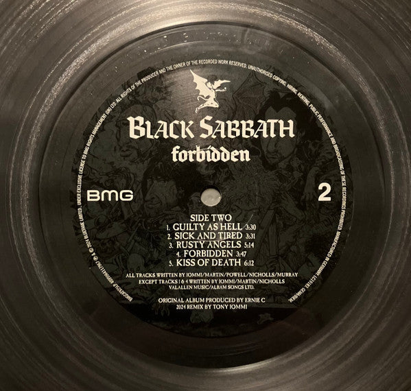 Black Sabbath - Forbidden [LP] - Ultra Clear – вісімнадцятий студійний альбом (1995) британського гурту Black Sabbath, представлений на надзвичайно прозорому (Ultra Clear) кольоровому вінілі. Ця платівка стала останнім студійним альбомом з вокалістом Тоні Мартіном і барабанщиком Козі Пауеллом. В альбомі гурт спробував інтегрувати елементи грув-металу та індастріалу, що було поширеним трендом у середині 90-х. Продакшн здійснював відомий репер та продюсер Ice-T, що надало звучанню нетипової, "сухої" текстури. До треків, що заслуговують на увагу, належить «Get a Grip».