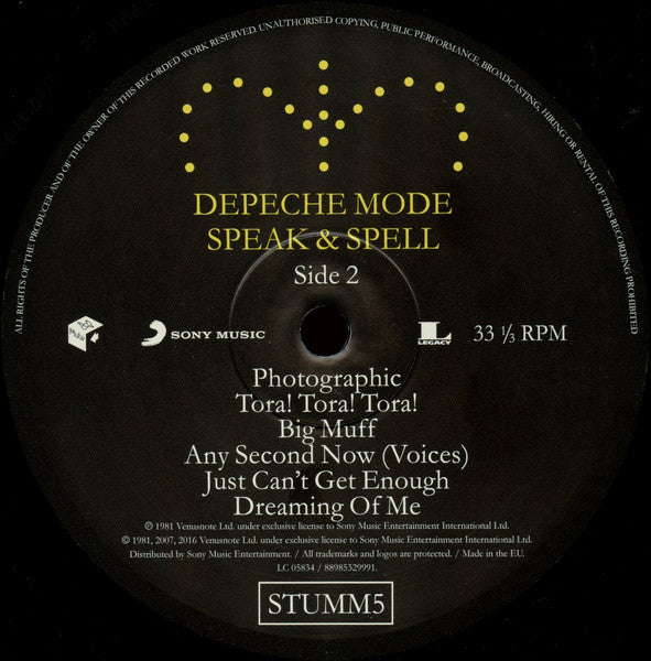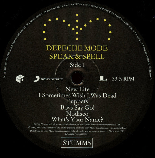 Depeche Mode - Speak & Spell [LP] – дебютний студійний альбом (1981) британського гурту Depeche Mode, представлений у форматі вінілової платівки. Цей альбом є єдиним, записаним у складі з Вінсом Кларком (Vince Clarke, який пізніше створив Yazoo та Erasure). Платівка знаменує початок кар'єри гурту, демонструючи чистий, оптимістичний та веселий синті-поп з акцентом на прості, радісні мелодії. На відміну від їхнього пізнішого, більш похмурого та індустріального звучання, Speak & Spell насичений яскравими синтезаторними тонами. Альбом містить їхні ранні хіти: «Just Can't Get Enough» та «New Life».