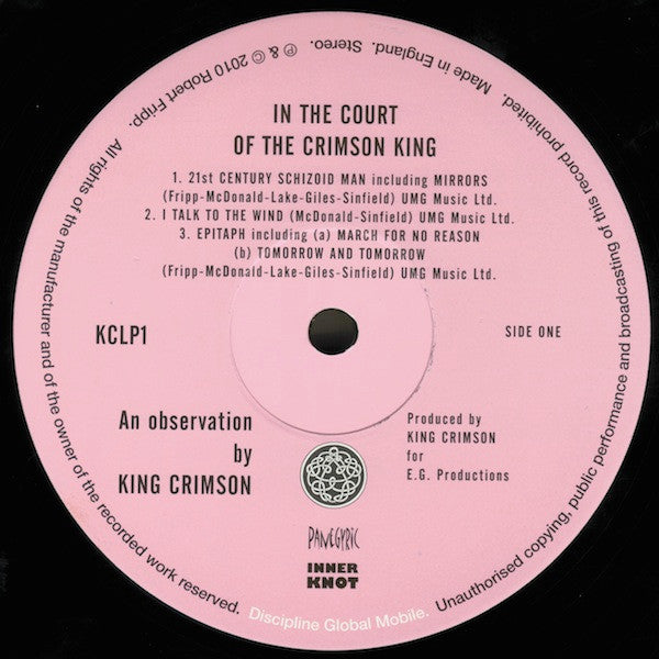 King Crimson – In The Court Of The Crimson King [LP] — дебютний студійний альбом британського прогресив-рок гурту, випущений у 1969 році. Реліз вважається класикою прогресивного року, відзначаючись складними композиційними структурами, експериментальними аранжуваннями та характерним поєднанням психоделічного року, джазових елементів і симфонічних впливів.