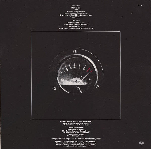King Crimson – Red [LP] — сьомий студійний альбом британського прогресив-рок гурту, випущений у 1974 році. Реліз відзначається потужним, емоційно насиченим звучанням із акцентом на гітарні рифи, драматичні ритми та темну атмосферу, що стало одним із визначальних етапів у творчості King Crimson.