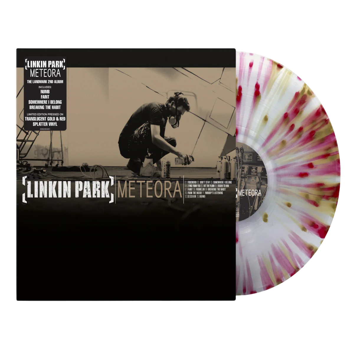 Linkin Park – Meteora [LP] – Translucent Gold & Red Splatter Vinyl — другий студійний альбом американського ню‑метал гурту Linkin Park, випущений у 2003 році. Альбом дебютував на 1-му місці чарту Billboard 200 і закріпив репутацію гурту як одного з лідерів альтернативного року та ню‑металу початку 2000-х.