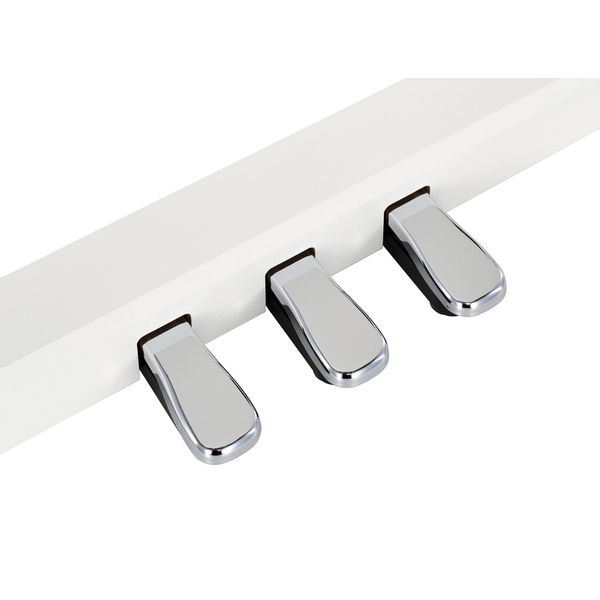 Окрім традиційного керування звуком, при використанні мобільних додатків педалі дозволяють дистанційно перегортати сторінки цифрових нот на планшеті чи смартфоні. Міцна конструкція забезпечує стабільність під час гри, а біле матове покриття точно відповідає відтінку корпусу інструмента. Використання такого блока допомагає музиканту опанувати складні виконавські техніки та гарантує високий рівень комфорту під час щоденних занять.