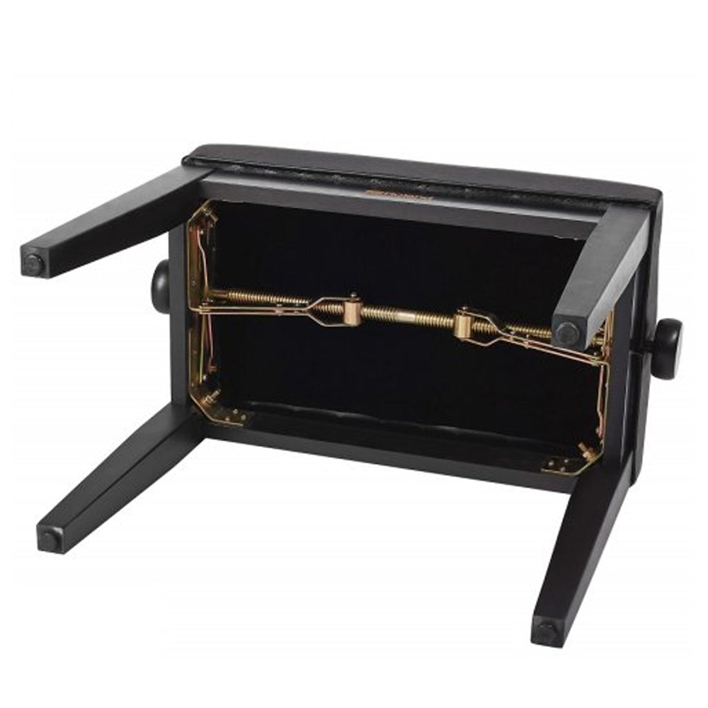 М'яка поверхня з високоякісного вінілу стійка до зносу та проста в догляді. Класичне чорне матове покриття гармонійно поєднується з дизайном більшості цифрових піаніно та роялів. Під сидінням розташоване відділення для зберігання нот, що дозволяє тримати необхідні навчальні матеріали під рукою. Ця модель гарантує правильну посадку та комфорт, допомагаючи зосередитися на техніці виконання.