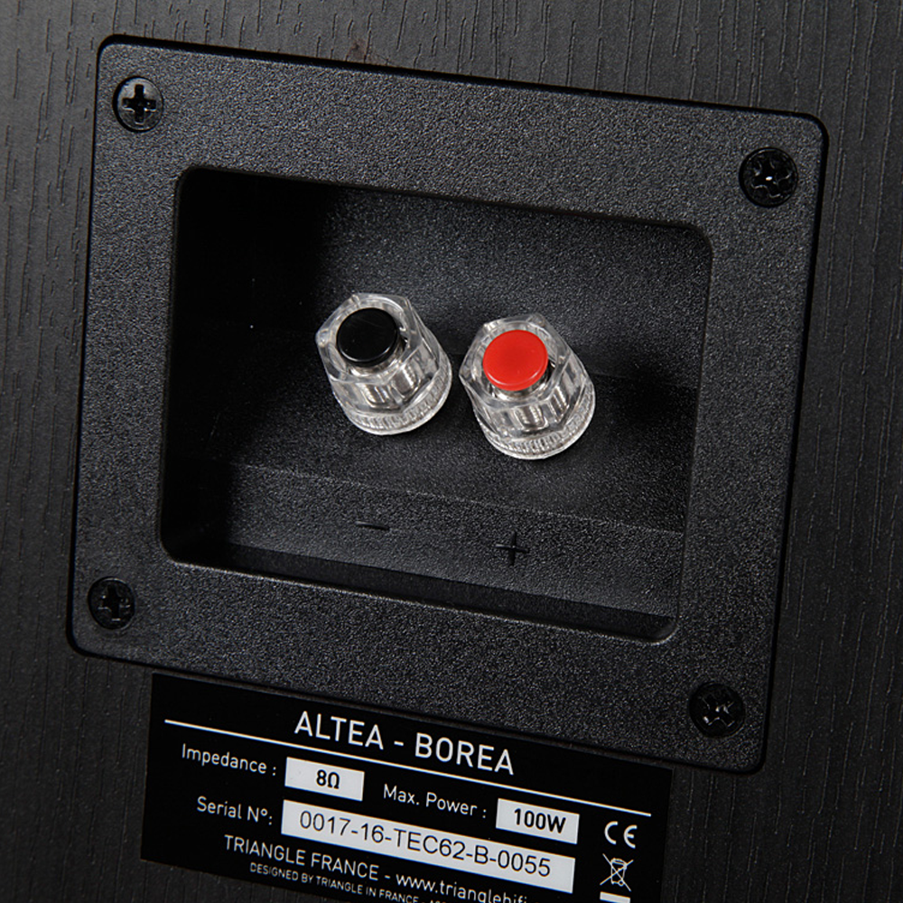 Акустика TRIANGLE вирізняється винятковою якістю звучання і елегантним дизайном. Акустичні системи Altea Borea створені з використанням фірмових випромінювачів і технологій, застосованих у флагманських моделях Triangle. Високочастотний динамік із запатентованим рупором, який уперше з’явився у серії Esprit Ez, був доопрацьований для досягнення максимально природного звучання в будь-якому просторі. Твітер із неодимовим магнітом оснащено спеціальною акустичною камерою, яка поглинає зворотні звукові хвилі, знижуючи спотворення й забезпечуючи високу ефективність і точну спрямованість.