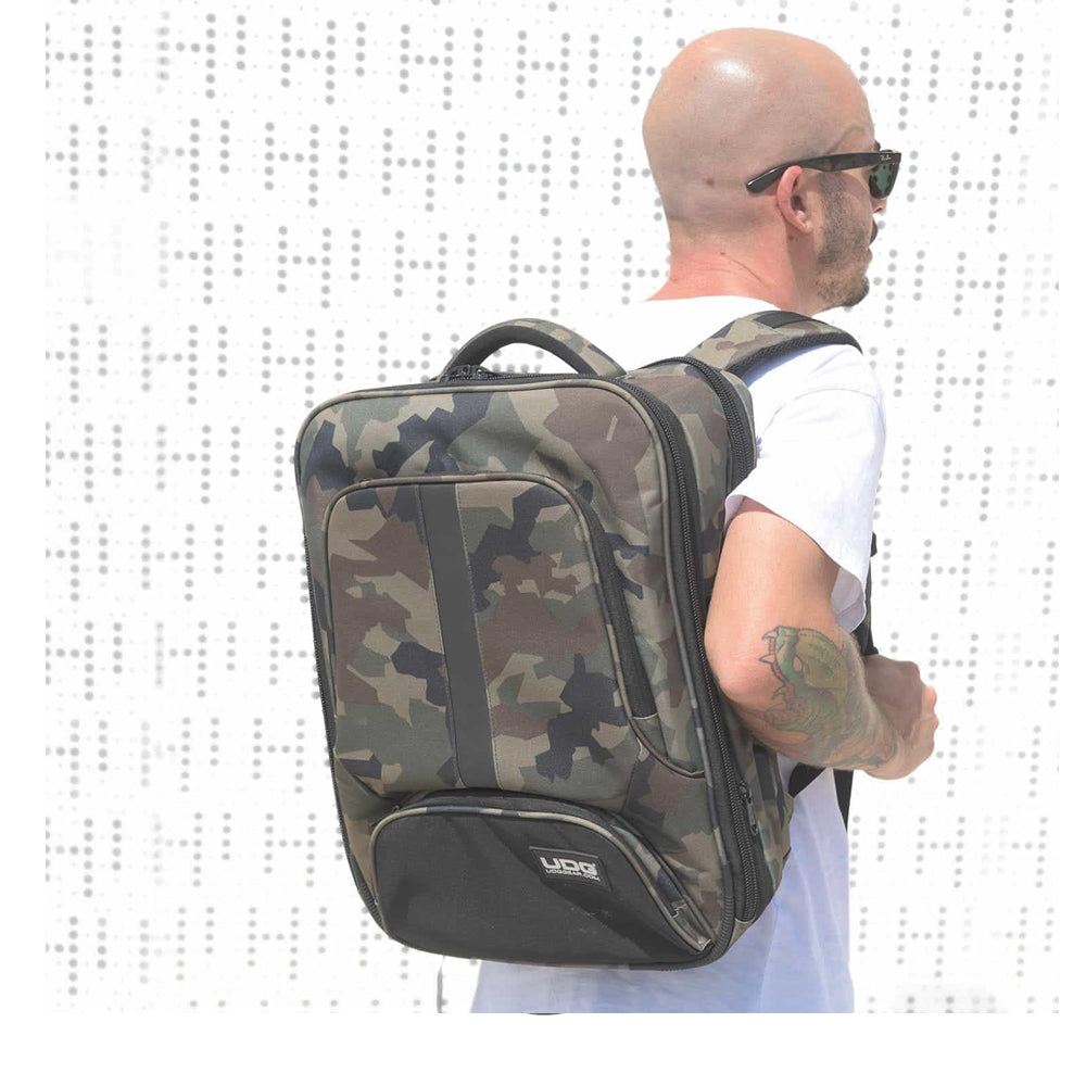 UDG Ultimate Backpack Slim Black Camo/Orange Inside — стильний рюкзак для діджеїв, продюсерів і музикантів, які цінують зручність і надійність. Завдяки водостійкому нейлону 450D він захищає обладнання від вологи, пилу та механічних пошкоджень. Лаконічний чорний камуфляж зовні поєднується з яскравою помаранчевою підкладкою всередині, що не лише додає характеру, а й робить пошук речей у темряві простішим. Ідеальний варіант для тих, хто часто подорожує з ноутбуком і контролерами.