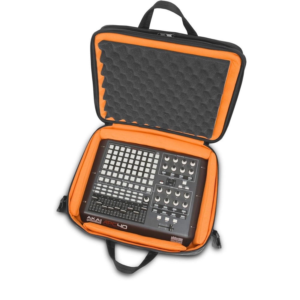 UDG Ultimate MIDI Controller SlingBag Medium Black/Orange — продумана черезплічна сумка для діджеїв і продюсерів, розрахована на перевезення контролера середнього формату, ноутбука та повного набору аксесуарів. Щільний водовідштовхувальний нейлон захищає від дощу та зношування, м’яка підкладка амортизує удари, а контрастна помаранчева підкладка спрощує пошук дрібниць у темряві. Посилене дно тримає форму, зручний ремінь із м’якою накладкою знімає навантаження з плеча, а стриманий чорний дизайн акуратно виглядає на гастролях, у студії та в дорозі.
