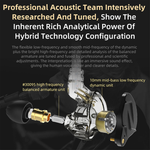 Всередині — 10-мм динамічний драйвер і арматурний твіттер з активним кросовером. Звучання побудоване на V-подібній АЧХ із глибоким басом, виразними високими та природними середніми. Бас щільний і деталізований, ВЧ — яскраві й чіткі, середина — текстурна та емоційна. Стереопанорама широка, як у навушниках вищого класу.