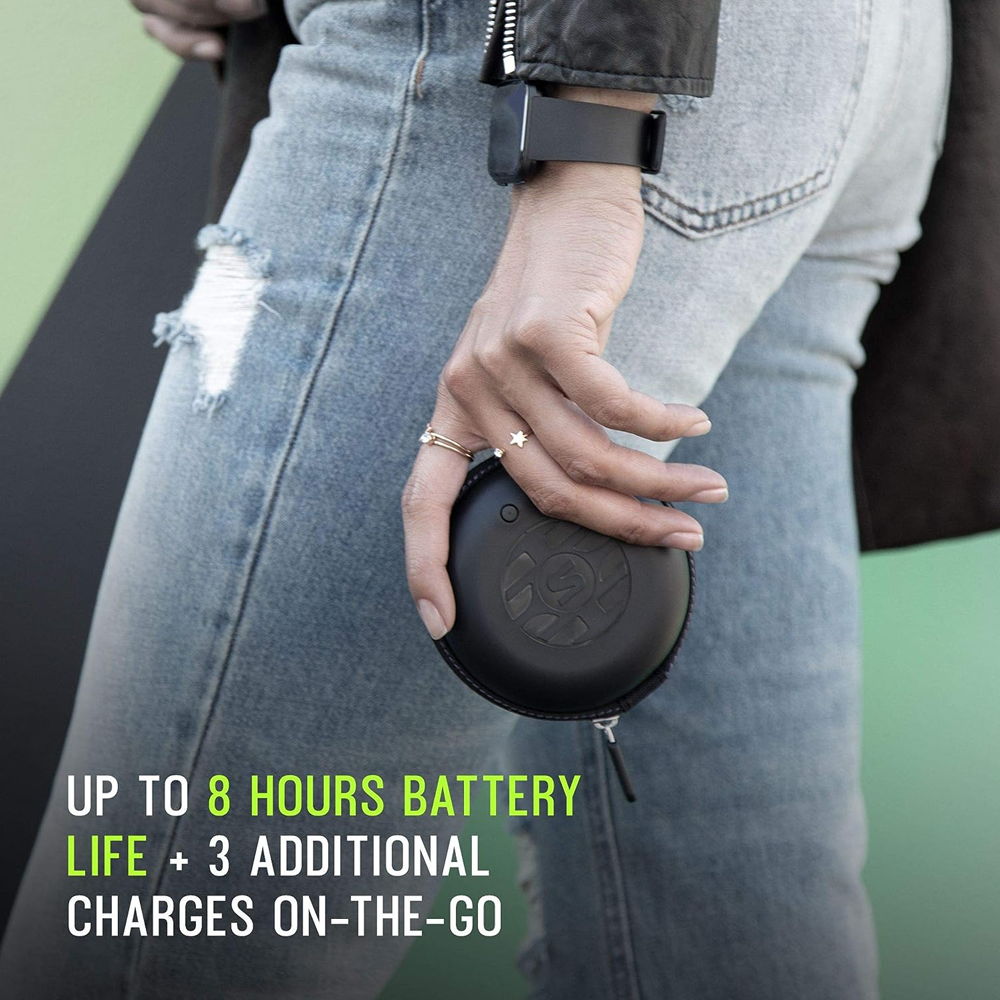До 8 годин роботи від одного заряду, плюс три додаткові заряди з кейсу — загалом до 32 годин автономності.
