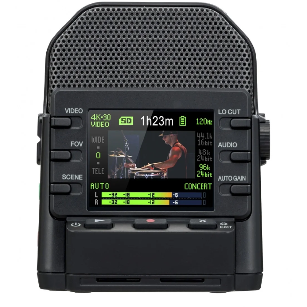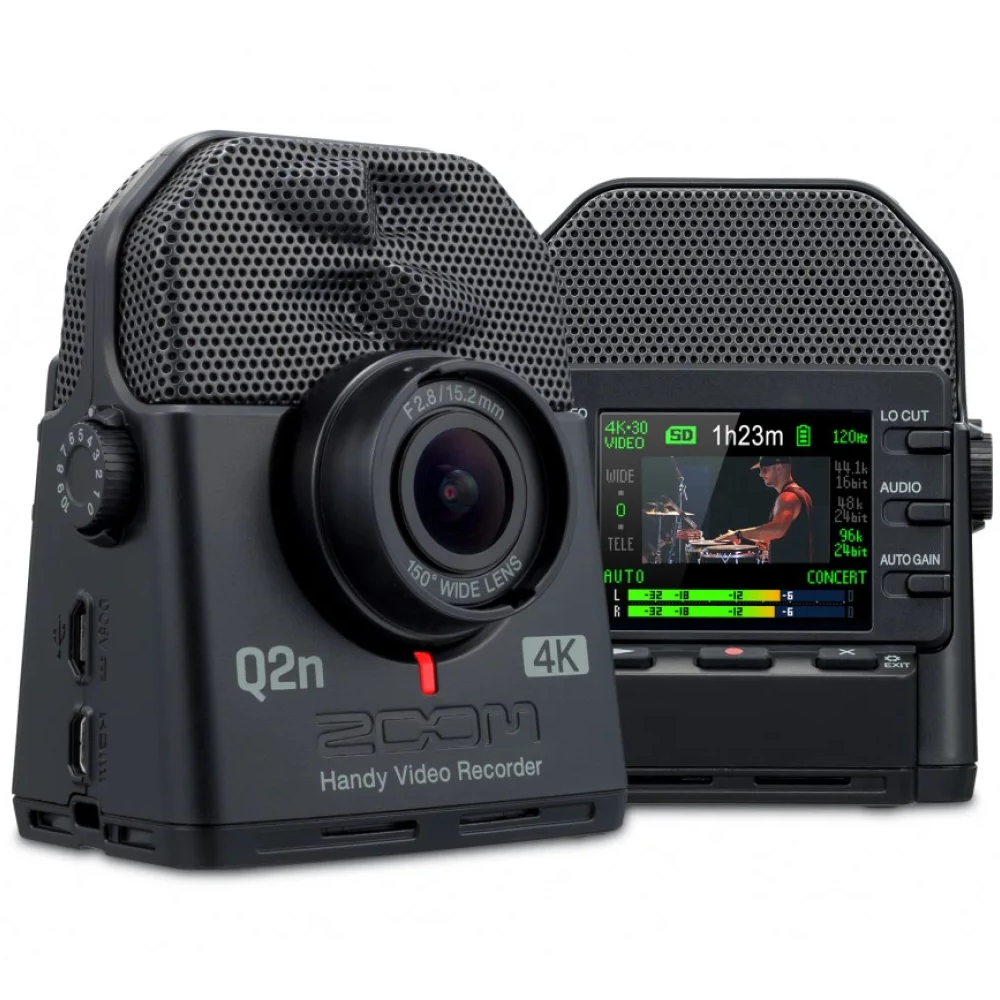 Zoom Q2n-4K — портативний відеорекордер, що поєднує зйомку у форматі 4K та професійний стереозвук. Завдяки ширококутному об’єктиву 150° із діафрагмою f/2.8 він чудово підходить для зйомки концертів, репетицій чи стрімів. Вбудовані X/Y-мікрофони витримують рівень звукового тиску до 120 dB SPL, тож навіть гучні виступи будуть записані чисто та без спотворень.