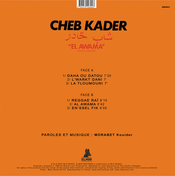 Ця платівка представляє альбом "El Awama" алжирського співака Шеба Кадера, одного з найвідоміших виконавців жанру раї. Точна дата випуску та деталі можуть варіюватися залежно від видання, але альбом є важливою частиною його дискографії.