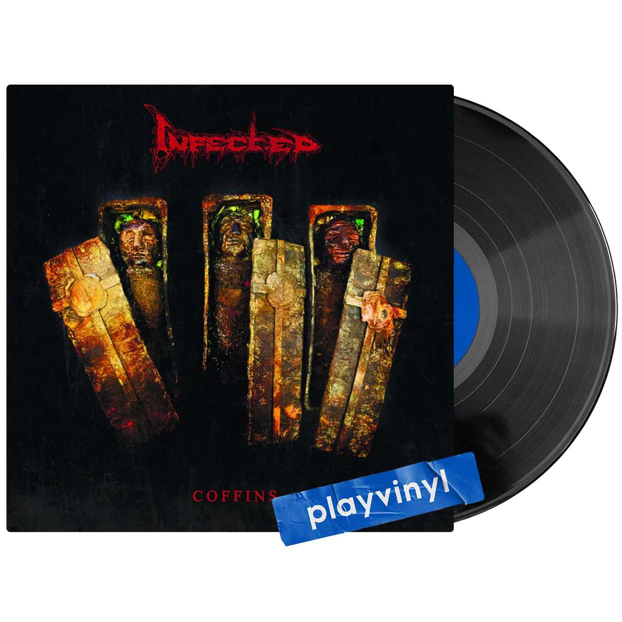 Infected – Coffins [LP] — похмурий, щільний і насичений реліз, що передає атмосферу сучасного дарк-металу. Платівка вирізняється важкими гітарними шарами, масивною ритм-секцією та вокалом, який тримає баланс між агресивністю та емоційною темрявою. Музика звучить прямолінійно й густо, створюючи той характерний тиск і настрій, який цінують прихильники важких жанрів.