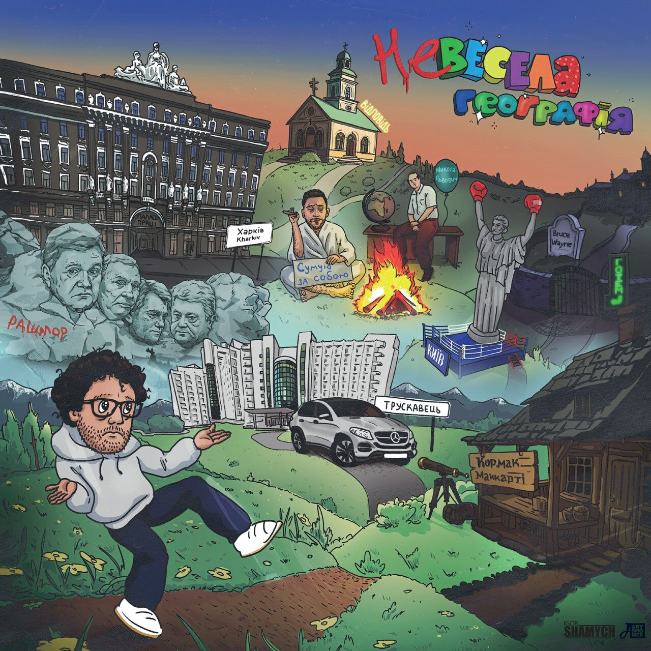 Ця вінілова платівка представляє збірку двох робіт від українського репера та музиканта Міші Правильного, відомого своєю участю в гурті "Глава 94" та сольною творчістю. Цей вініловий реліз об'єднує його міні-альбоми "Казки під піанінку" та "Невесела географія"  на одній платівці.