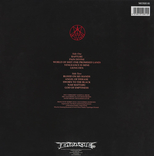 Ця вінілова платівка представляє "Covenant" – третій студійний альбом американського дез-метал гурту Morbid Angel. Альбом був випущений 1 червня 1993 року на лейблі Earache Records. "Covenant" широко визнаний як один з найважливіших та найвпливовіших альбомів у жанрі дез-металу, який закріпив за гуртом статус піонерів та лідерів екстремальної сцени.