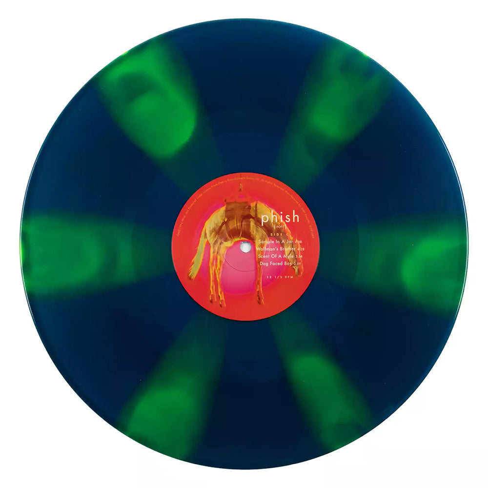 Це кольорове видання подвійного вінілу "Hoist (Laser Beams)" від американського рок-гурту Phish, випущеного у 1994 році. Платівка є п'ятим студійним альбомом колективу та відома своїм еклектичним поєднанням жанрів, включаючи фанк, джаз, рок та прогресивні елементи.