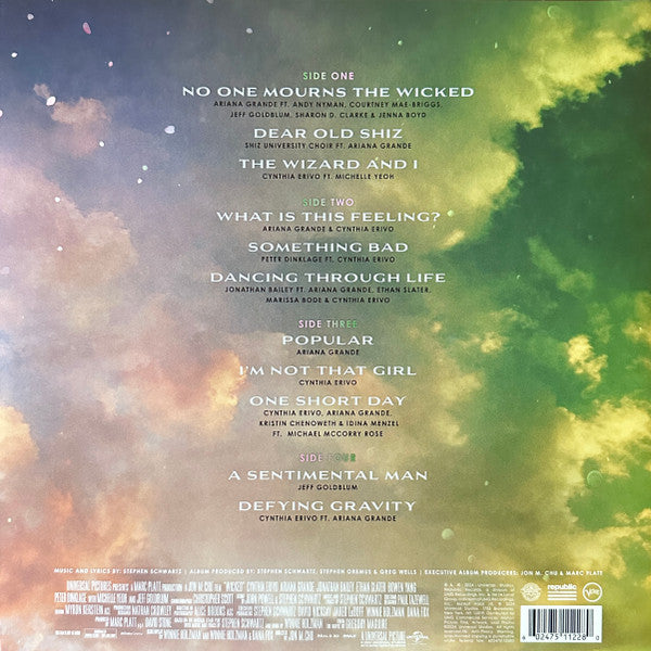 Двохплатівкове видання саундтреку до мюзиклу Wicked переносить слухача у чарівний світ Ельфи та відомих персонажів з Оз. Альбом об’єднує пісні, виконані провідними артистами бродвейського складу, та оригінальні композиції, що відображають емоції, пригоди та драматичні повороти сюжету. Мелодії варіюються від зворушливих балад до енергійних і ритмічних номерів, створюючи яскраву аудіо-історію, що доповнює театральне відтворення мюзиклу.