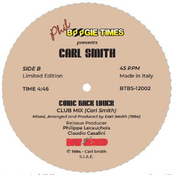 Реліз включає дві версії: оригінальний трек «Come Back Lover» (4:03) та розширену клубну інструментальну версію (4:46), обидві аранжовані і написані самим Carl Smith та ремастовані легендарним Herb Powers Jr. у Frankford/Wayne Mastering Labs.