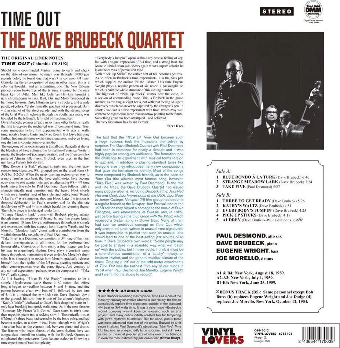 The Dave Brubeck Quartet — Time Out (Stereo, 180g) [LP] — один із найвизначніших та найбільш продаваних джазових альбомів усіх часів. Випущений у 1959 році на лейблі Columbia Records, він став сміливим експериментом, що назавжди змінив правила гри в джазі.