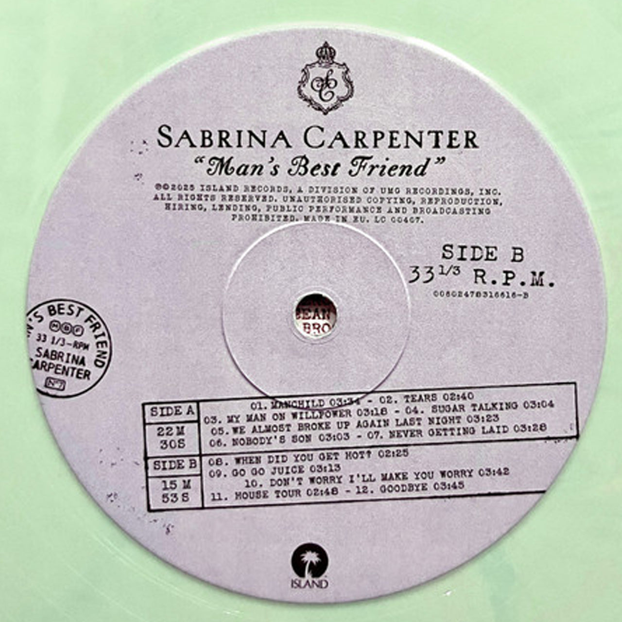 Sabrina Carpenter — Man's Best Friend [LP, Sea Foam Vinyl] — Яскравий студійний альбом Сабріни Карпентер поєднує поп-звучання з елементами інді та соулу. У цих треках вона демонструє впевнений вокал, іронічні й щирі тексти, а також витончене почуття стилю. Теми любові, самоприйняття й внутрішньої сили відкривають артистку з нової сторони та зміцнюють її статус сучасної поп-авторки.