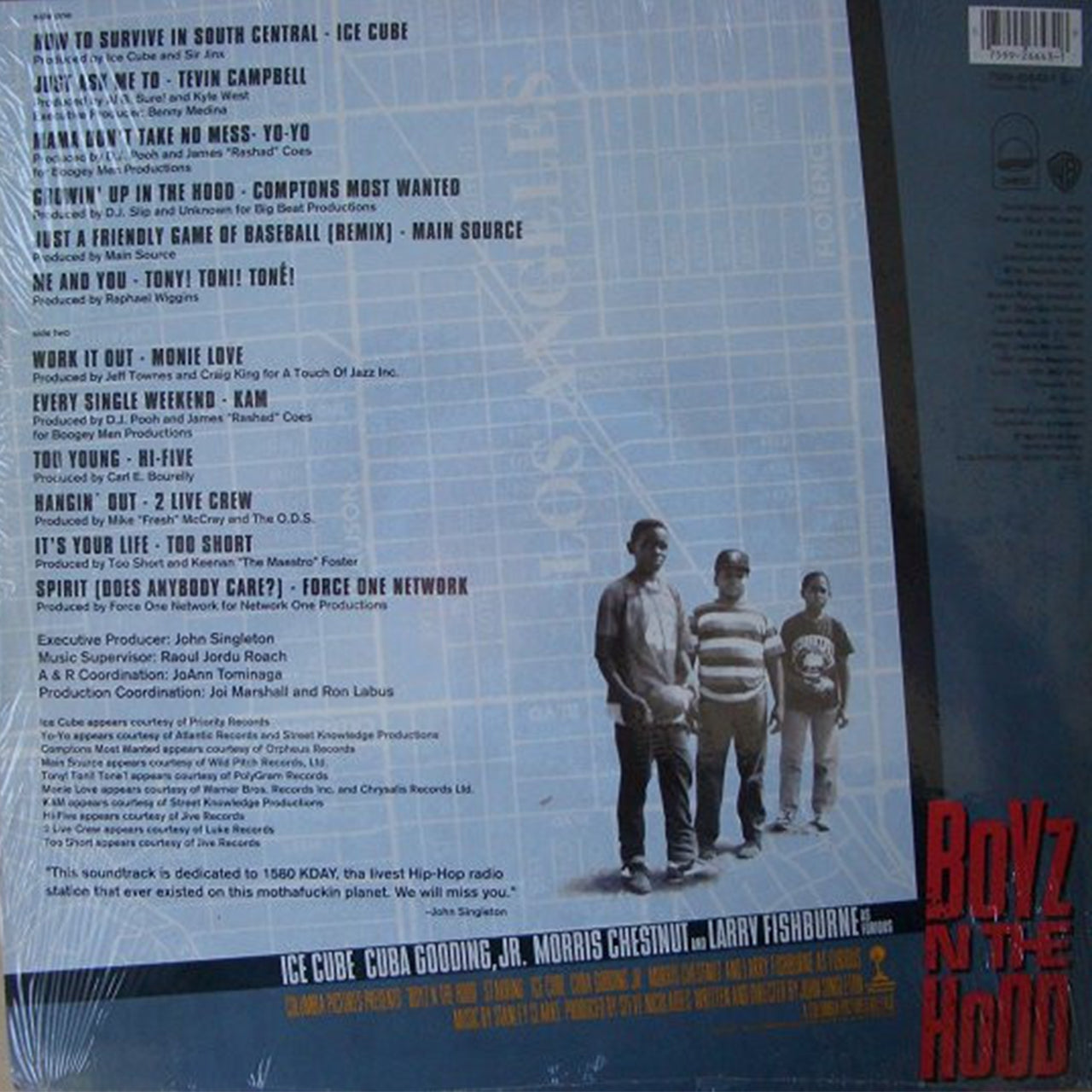 Various Artists – Boyz N the Hood (Original Motion Picture Soundtrack) [2LP] — знаковий саундтрек ери «golden age» хіп-хопу та нового R&B, що передає дух Південного Центрального Лос-Анджелеса початку 1990-х. Грувові біти, густі баси й соціально заряджені тексти поєднуються з м’якими соул-мелодіями, створюючи кінематографічну атмосферу міських історій. У треклисті — реп-гімни та повільні R&B-номери на кшталт How to Survive in South Central (Ice Cube), Just Ask Me To (Tevin Campbell) і Growin’ Up in the Hood (Compton’s Most Wanted), які задають тон стрічці та епохі.