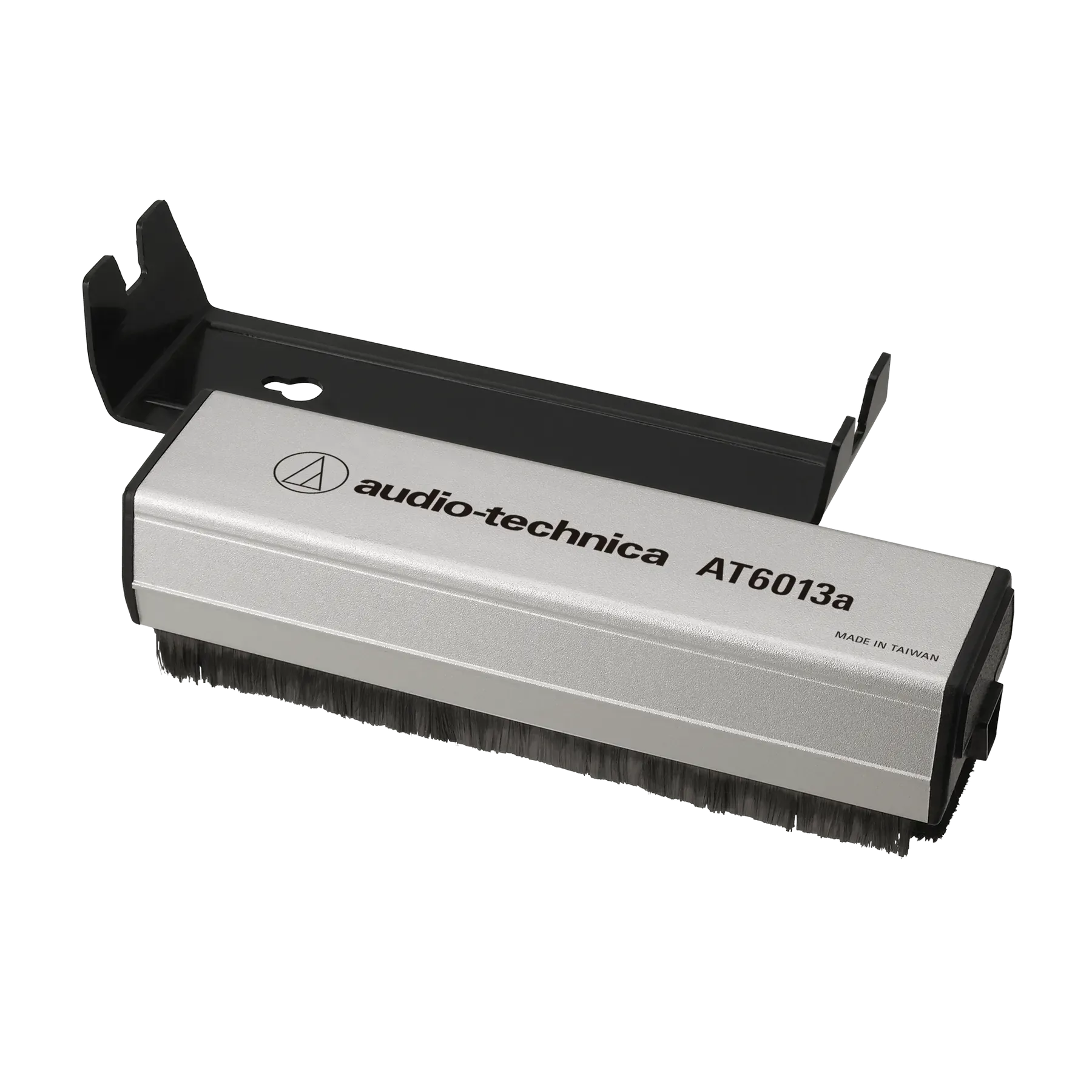 Антистатична щітка Audio-Technica AT6013a дбайливо та ефективно видаляє пил та знімає статичне електрику з поверхні вінілових пластинок. Щітка має комбіновану поверхню, що чистити - бічні довгі ворсинки з вуглецевого волокна дістають до самого дна канавок пластинки, а середня куля з м'якого велюру видаляє пилку без залишку. Така конструкція дозволяє завжди утримувати платівки в ідеальному стані, тим самим значно збільшуючи термін служби іголки. Дві вугільні щітки та центральна бархатна підкладка працюють разом, щоб збирати пил та інші загрязнення за один прохід. Антистатичні щіткові волокна залишаються прямими для глибокого очищення канавок.