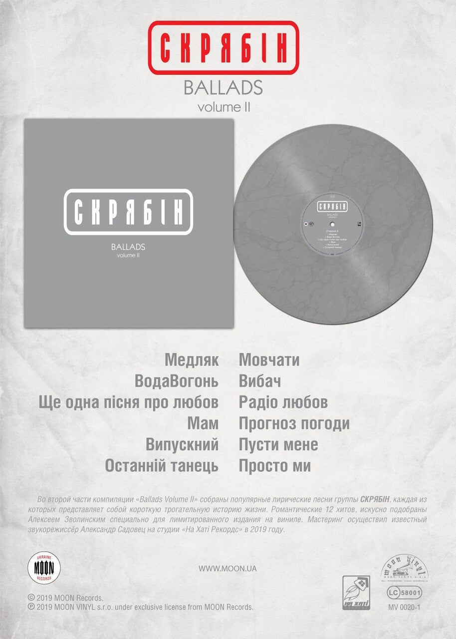 Це збірка баладних пісень культового українського музиканта, співака, автора пісень та лідера гурту "Скрябін" Андрія Кузьменка (Кузьми). Альбом "Ballads. Volume II" на вінілі є посмертним релізом, що віддає шану його ліричній творчості. Цей альбом є продовженням серії "Ballads" і дозволяє шанувальникам по-новому відкрити для себе менш відомі або улюблені, але не завжди хітові балади Кузьми.