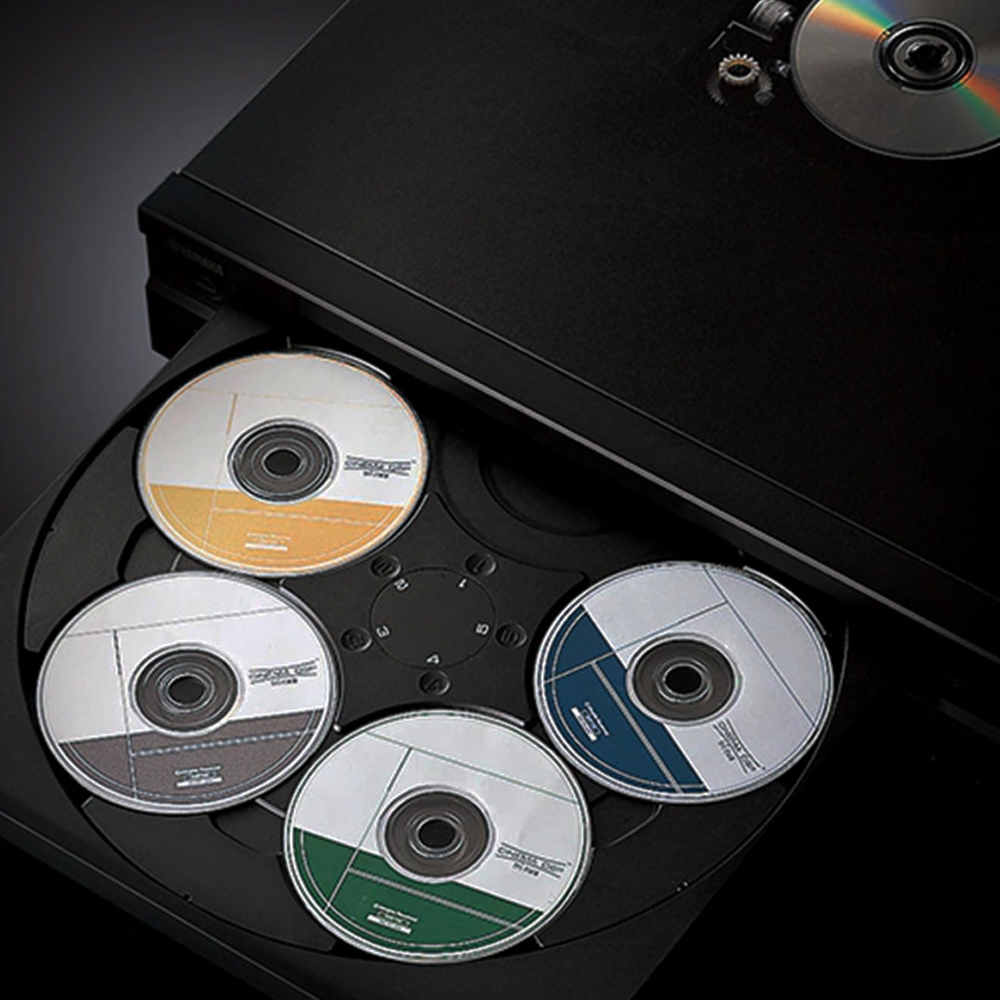 Це не просто програвач, а справжній CD-чейнджер: можна слухати музику без пауз завдяки функції Play X Change — змінювати диски прямо під час відтворення. Лоток вміщує п’ять компакт-дисків одночасно й повністю відкривається для зручності.