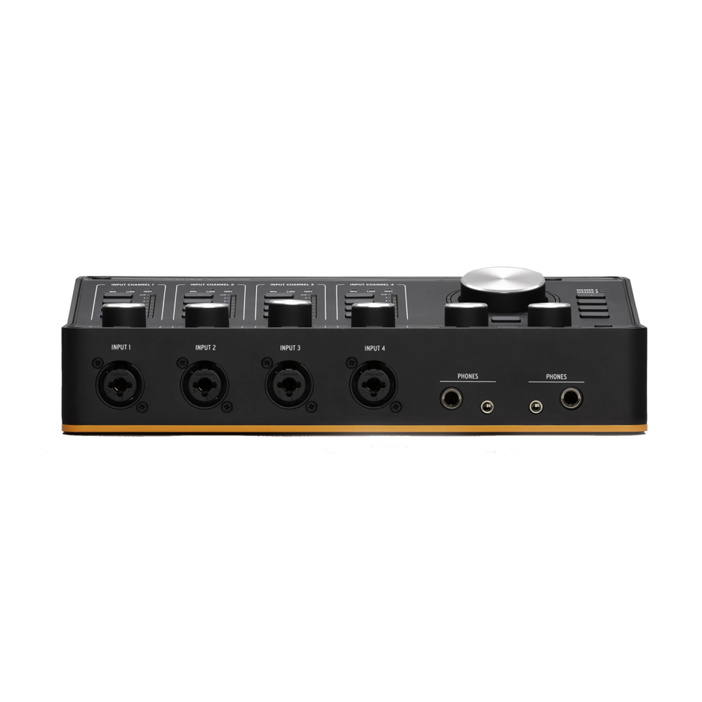 Інтерфейс має 4 комбіновані входи XLR/TRS для мікрофонів та інструментів і 4 лінійні входи TRS, з яких входи 5 і 6 також працюють як RIAA-фоно вхід для вінілових програвачів (через RCA з заземленням).