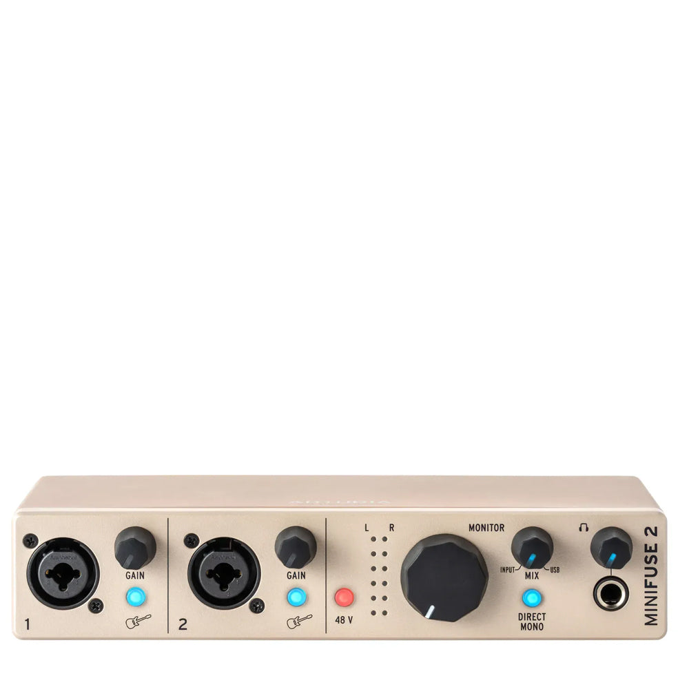 Arturia MiniFuse 2 — це компактний і зручний аудіоінтерфейс для музикантів, продюсерів та подкастерів. Має два комбіновані входи для мікрофонів або інструментів, підтримує фантомне живлення 48 В, оснащений MIDI, USB-C і додатковим USB-портом для підключення зовнішніх пристроїв.