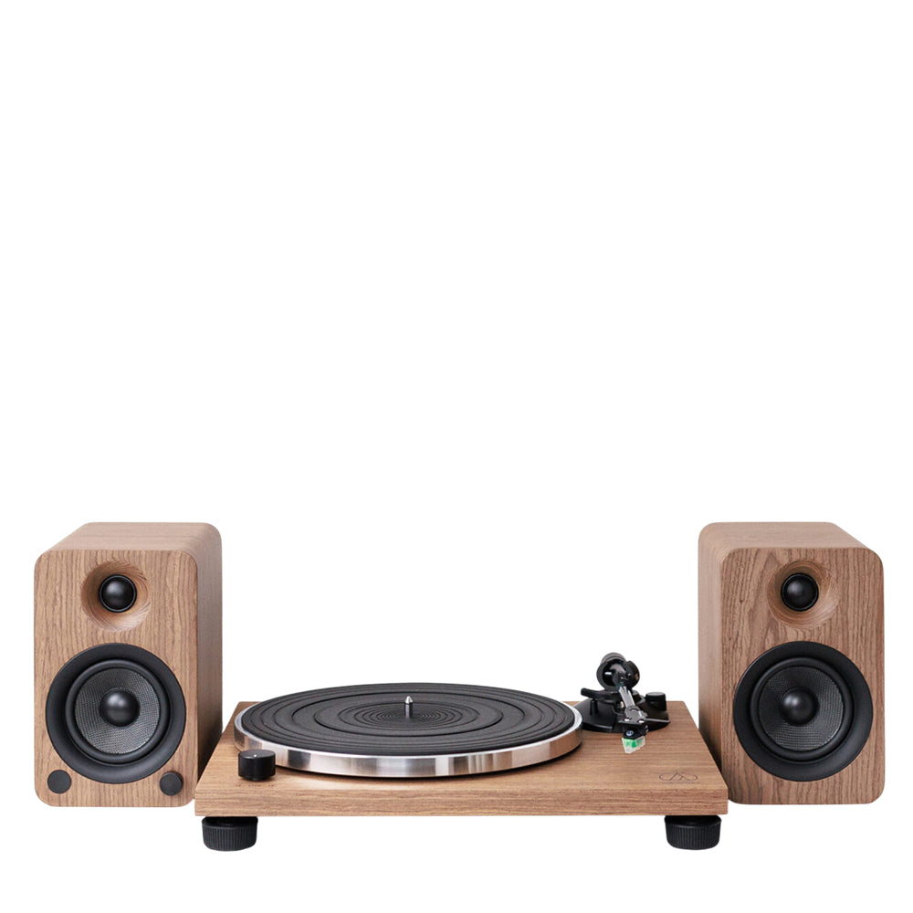 Програвач AT-LPW40WN оснащений пасовим приводом і S-подібним тонармом, що гарантує стабільне та точне відтворення, а картридж Audio-Technica забезпечує чистоту та деталізацію звуку. Активні колонки Kanto YU4 мають вбудований підсилювач, відтворюють глибокий бас і кристально чисті високі частоти та підтримують підключення через RCA, AUX і Bluetooth, роблячи систему універсальною для різних джерел звуку.