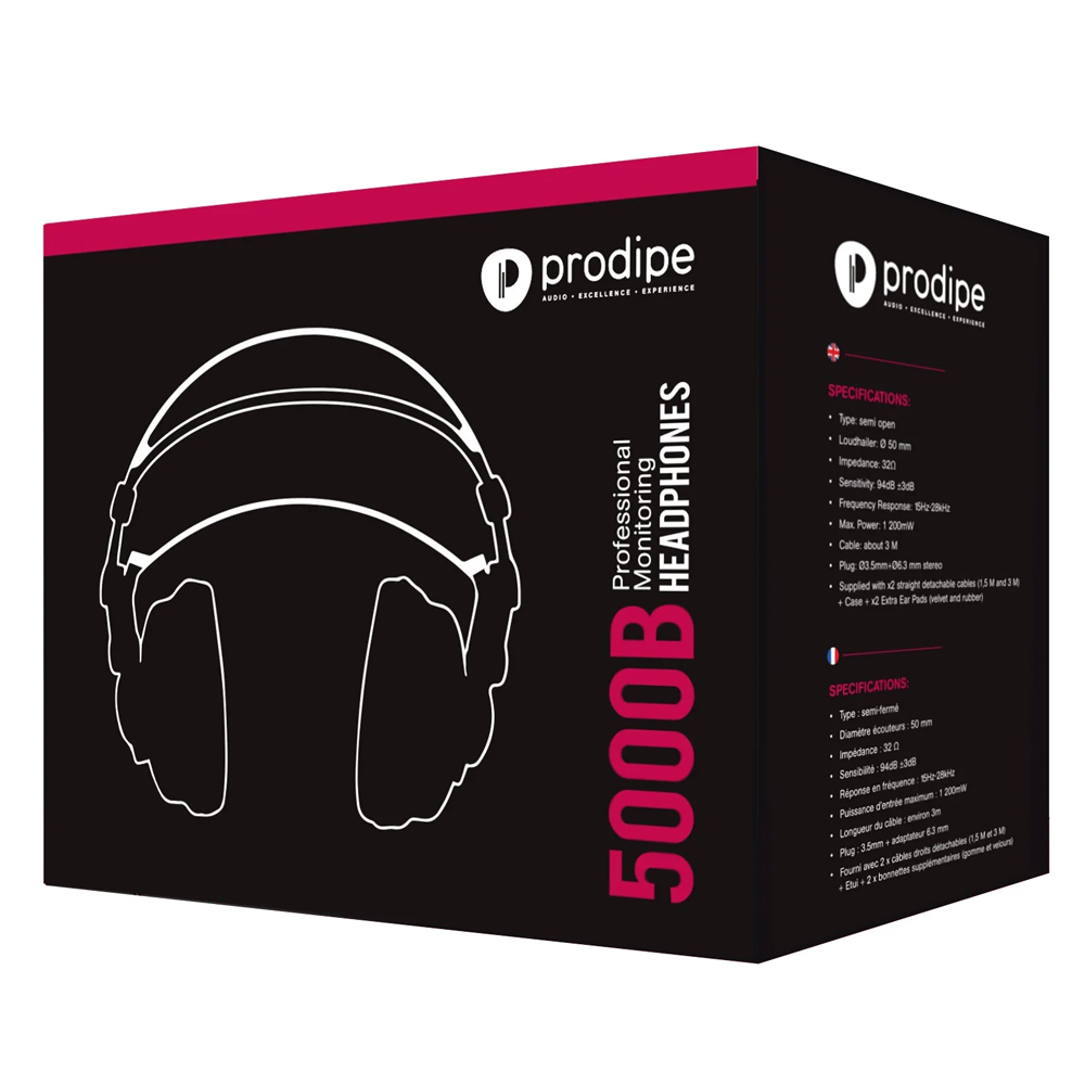Prodipe 5000B – це напіввідкриті студійні навушники, які призначені для складних умов прослуховування та високоточної роботи з моніторингу. Хороша шумоізоляція та дійсно комфортне прослуховування. Від професійного звукорежисера до вимогливого аудіофіла, 5000B пропонує виняткову та безкомпромісну передачу звуку для тих, хто шукає навушники високого класу.