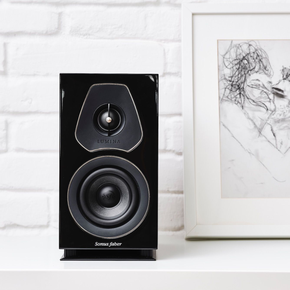 Усередині — динаміки власної розробки Sonus Faber: твітер DAD із м’яким куполом діаметром 29 мм і середньо-низькочастотний драйвер діаметром 12 см із целюлозного волокна. Разом вони формують чисте, деталізоване звучання з м’якими верхами, теплими середніми частотами й щільним, природним басом. Завдяки фронтальному фазоінвертору Lumina I легко розташувати навіть поруч зі стіною — без втрати об’єму й балансу.